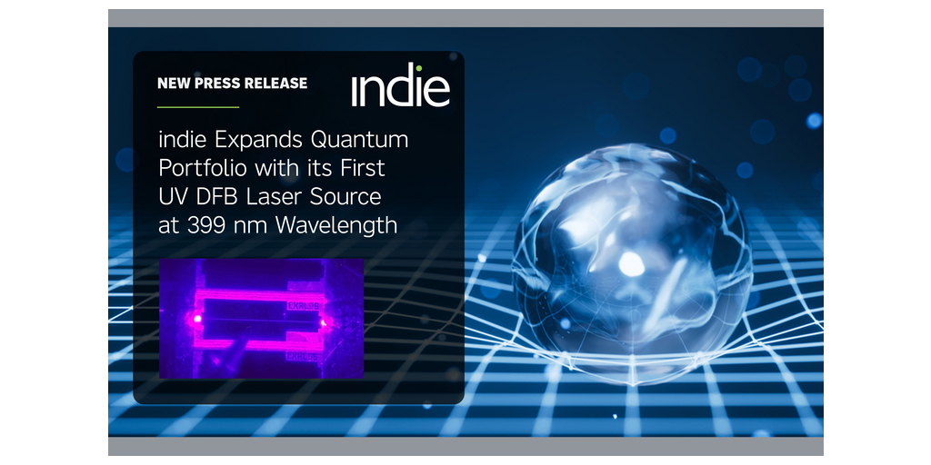 ALISO VIEJO, Calif.–(BUSINESS WIRE)–indie (Nasdaq: INDI), an automotive solutions innovator, has released its first Ultraviolet (UV) Visible Distributed Feedback (DFB) 399 nm single-frequency laser diode optimized for quantum computing systems based on cooled Ytterbium atoms. With the addition of this new device in the UV spectrum, indie is expanding on its previously announced LXM-U and narrow-linewidth visible DFB lasers, furthering our capabilities and strengthening our photonics portfolio, which is enabling advanced quantum technologies. Our photonics division continues to gain momentum as part of our strategic expansion into adjacent markets outside automotive, including quantum and humanoids, as demonstrated by our increasing customer traction and expanding product portfolio.